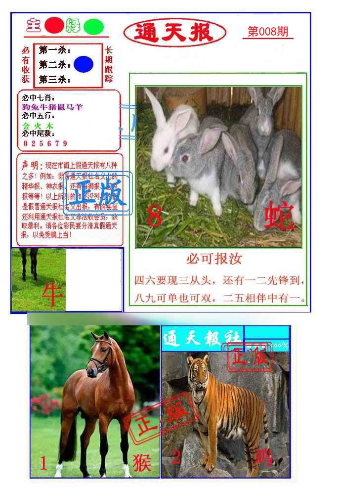 | 008期: ⑤肖 | 马猴鸡羊兔 | 牛04中 |