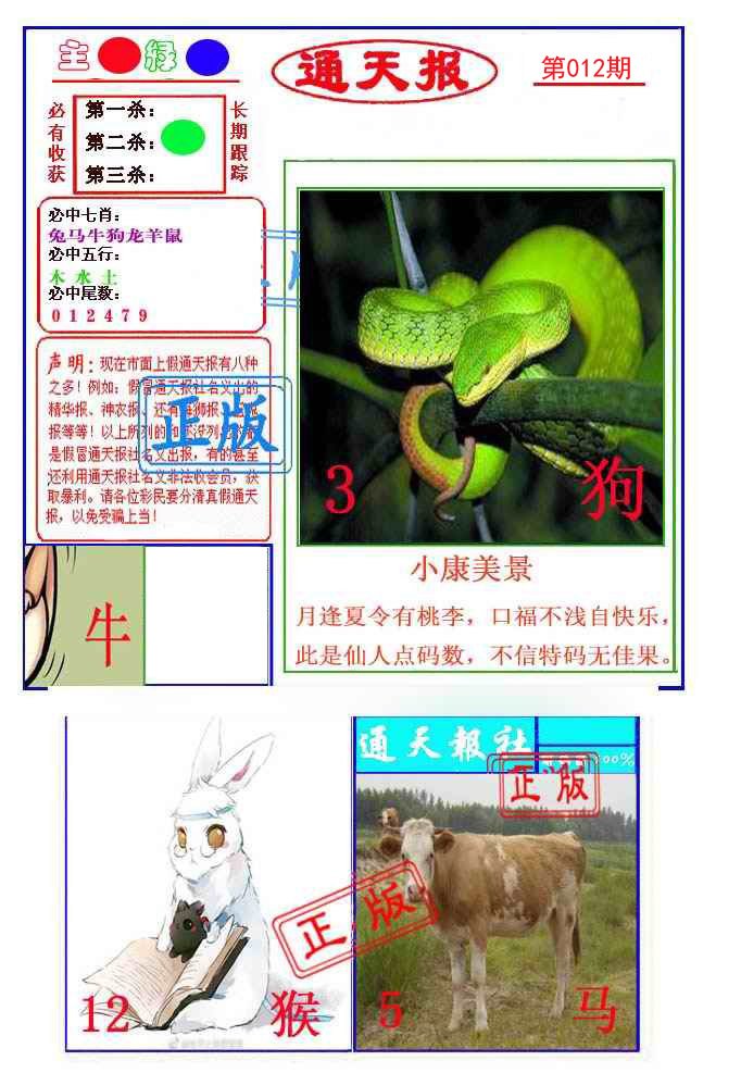 | 012期: ⑧肖 | 羊猪鸡兔鼠猴马蛇 | ????中 |