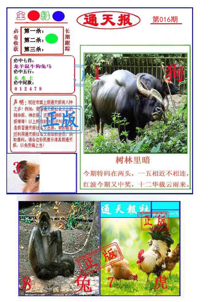 | 016期: ⑦肖 | 马猪鸡猴狗龙蛇 | 狗32中 |