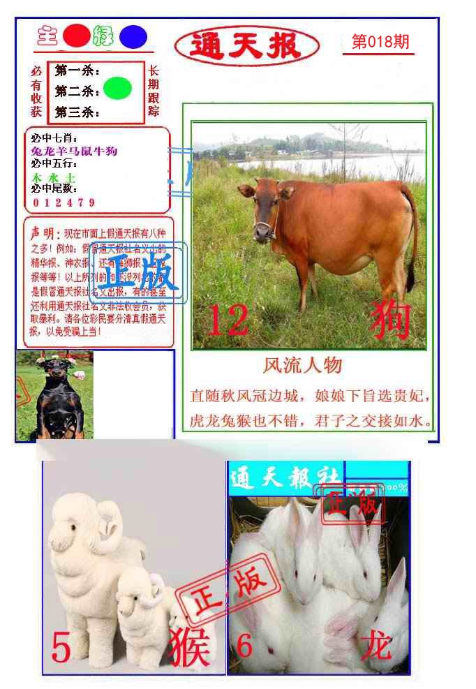| 012期: ⑥肖 | 羊猪鸡兔鼠猴 | 兔15中 |
