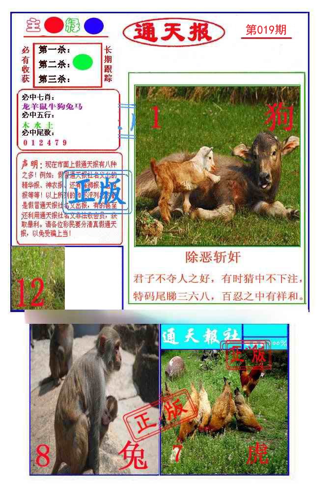 | 019期: ⑦肖 | 羊牛猪鸡兔马鼠 | 鸡09中 |