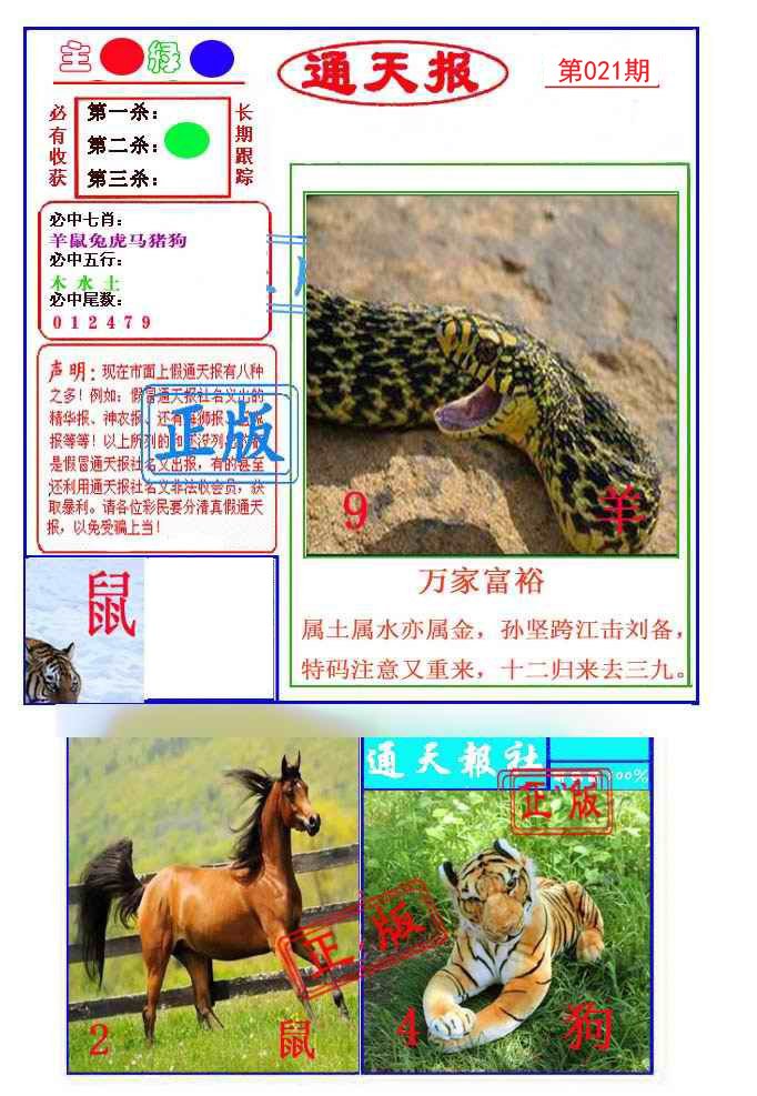 | 021期: ⑨肖 | 蛇猴羊狗马虎兔龙鸡 | 猪07中 |