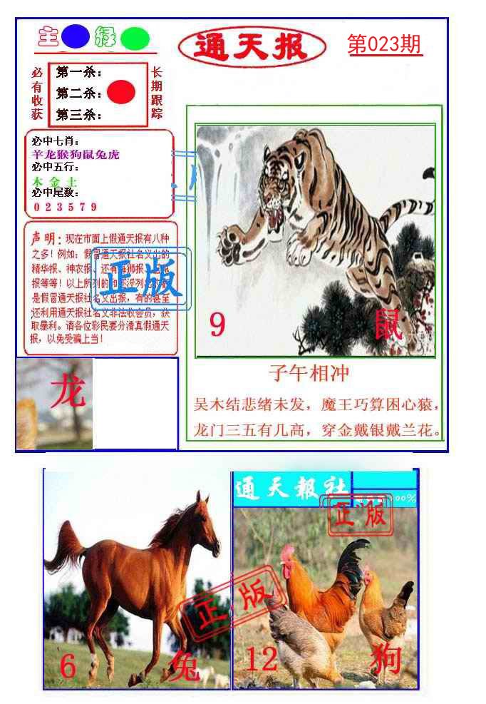 | 023期: ⑦肖 | 龙猴兔羊鼠鸡虎 | 鸡45中 |