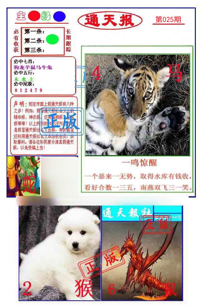 | 025期: ⑦肖 | 鼠马羊蛇牛猴龙 | ????中 |