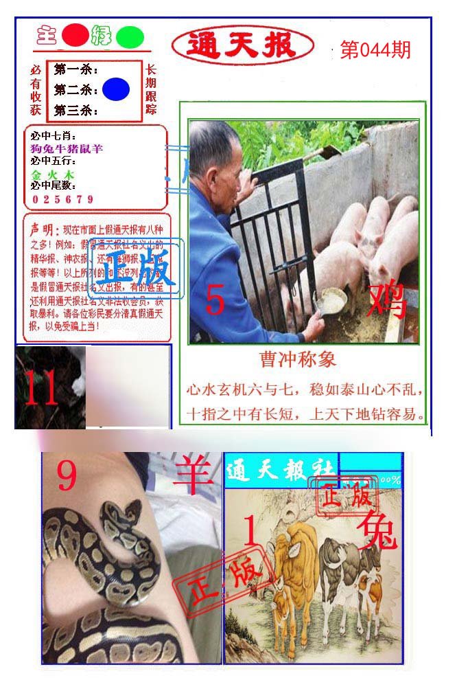 | 044期: ⑤肖 | 鸡狗马羊猪 | 牛05中 |