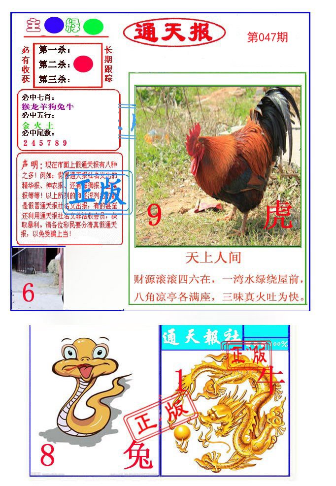 | 047期: ⑨肖 | 鸡鼠马虎兔猪狗蛇牛 | 龙26中 |