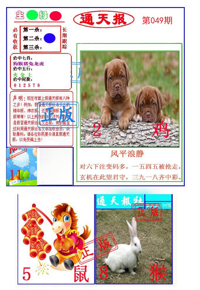 | 049期: ⑤肖 | 猪马牛蛇狗 | 兔40中 |
