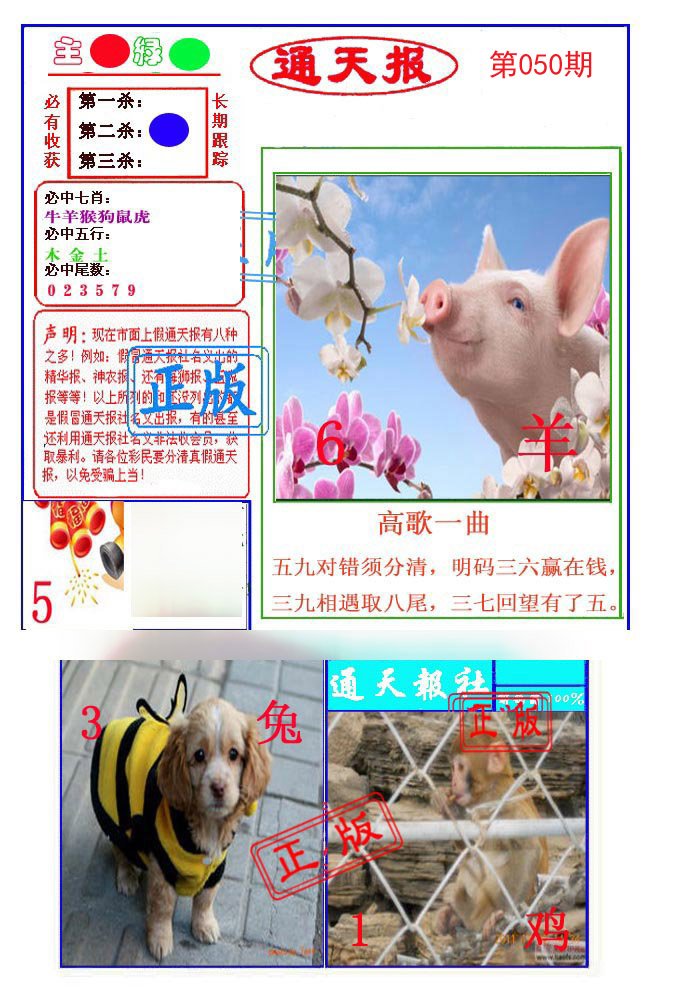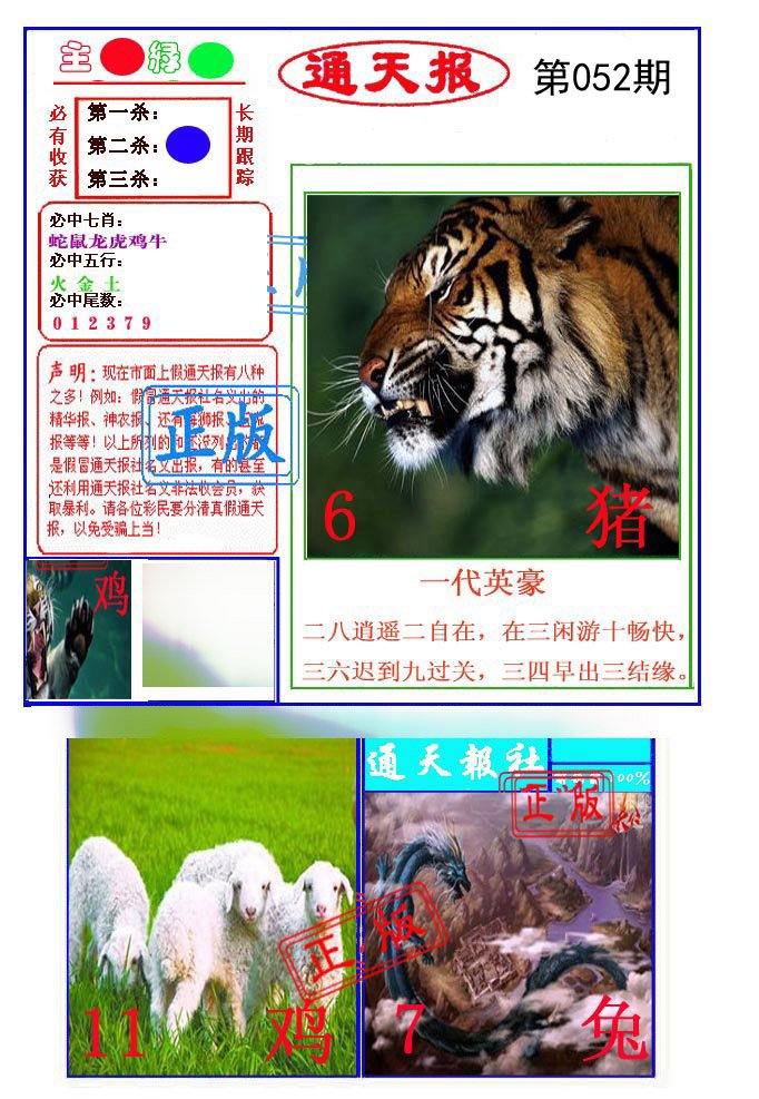 | 052期: ⑥肖 | 羊猪鸡龙牛兔 | 鸡34中 |