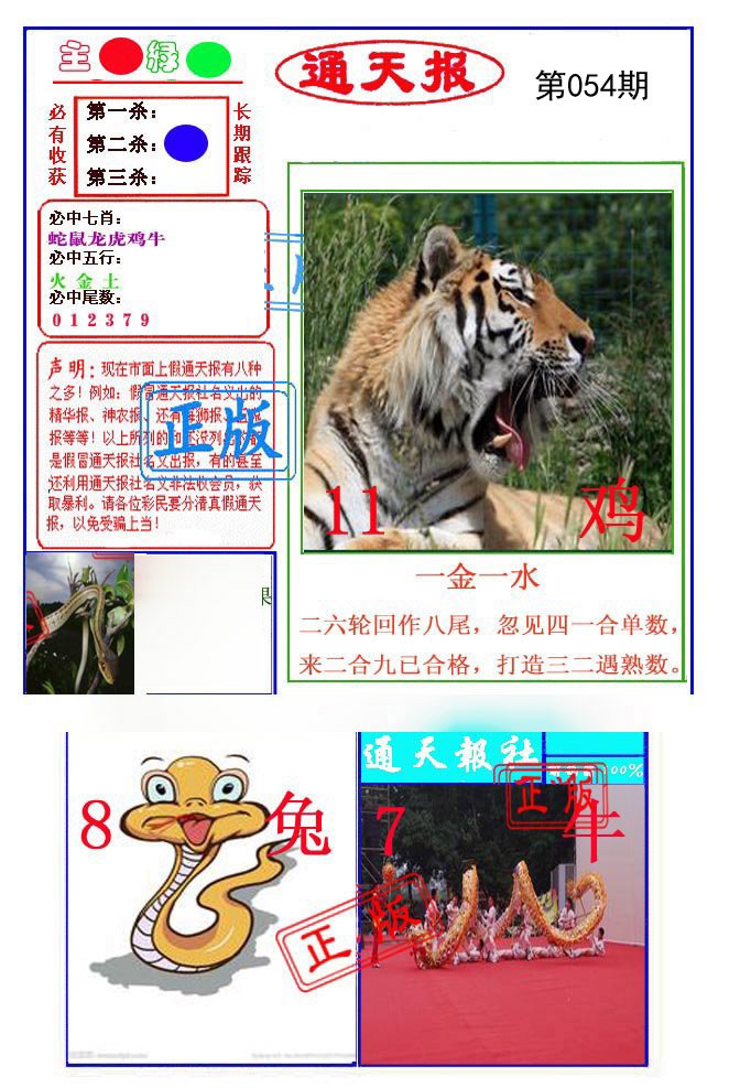 | 054期 | 虎 | 3尾 | 蓝双 | 07-16 | 12羊 |