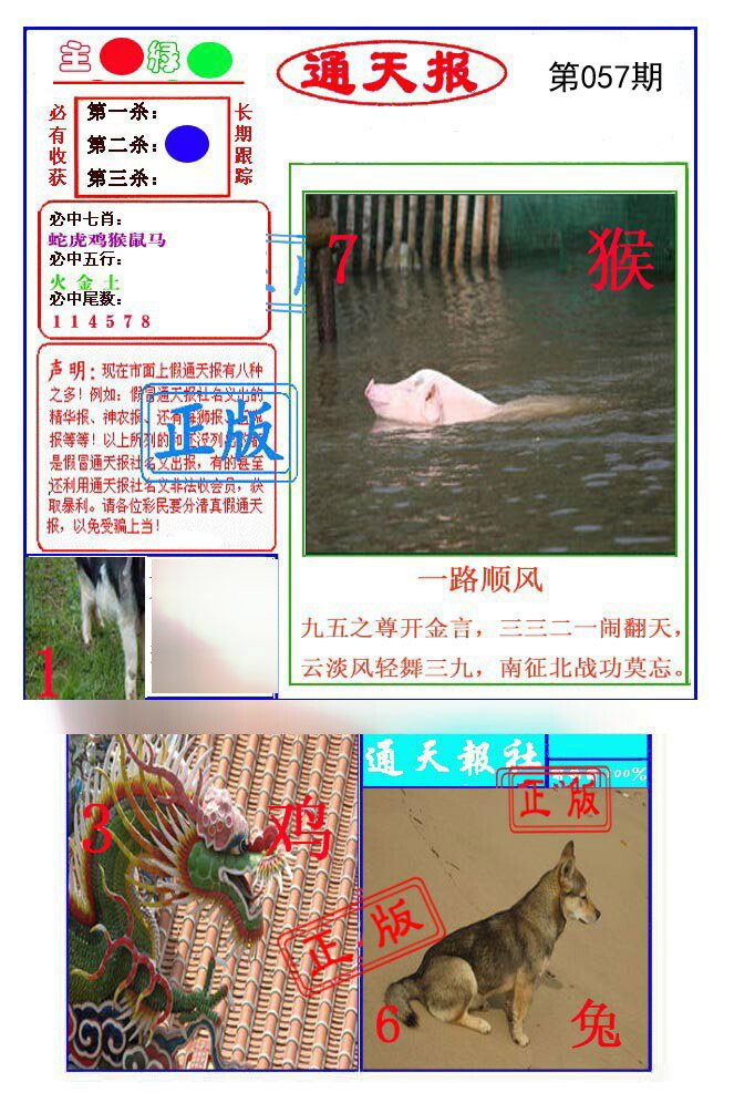 | 057期: ⑦肖 | 马兔龙羊猪蛇猴 | 鸡46中 |