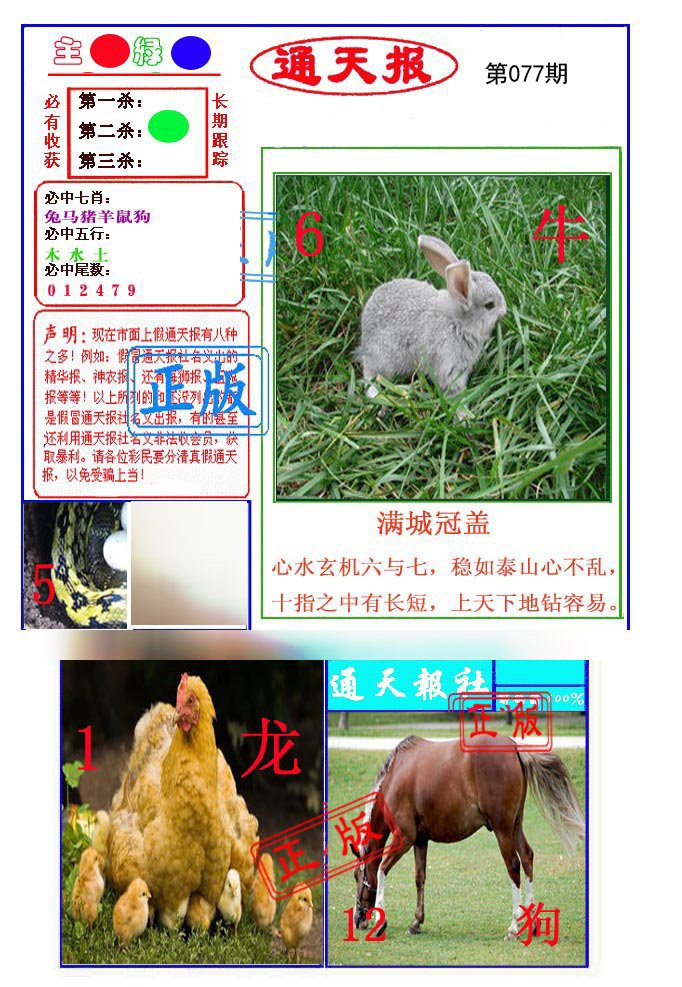 | 077期: ⑥肖 | 猪龙虎马兔狗 | 狗33中 |