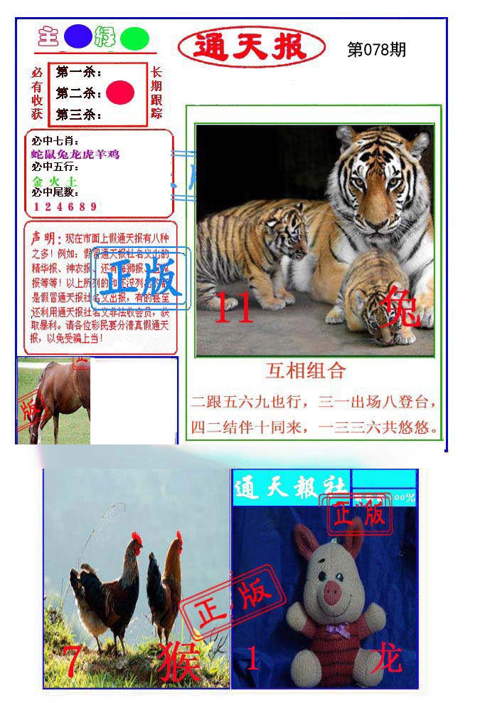 | 078期: ⑨肖 | 牛狗龙猪鸡羊鼠猴虎 | 猪20中 |
