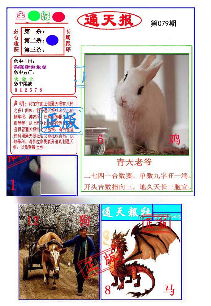 | 079期: ⑥肖 | 鼠虎鸡猪蛇猴 | ????中 |