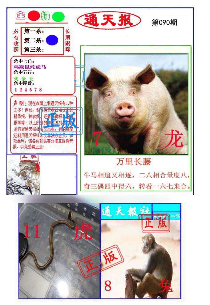 | 090期: ⑦肖 | 猪猴鸡鼠蛇兔牛 | 鸡34中 |