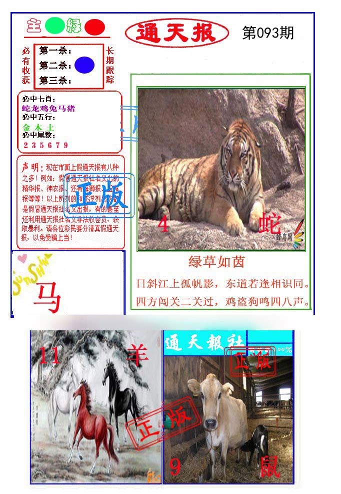 | 093期: ⑨肖 | 虎牛兔鼠鸡猪狗蛇羊 | ????中 |