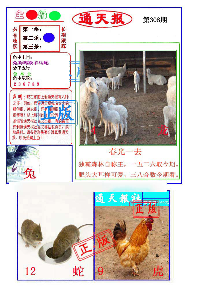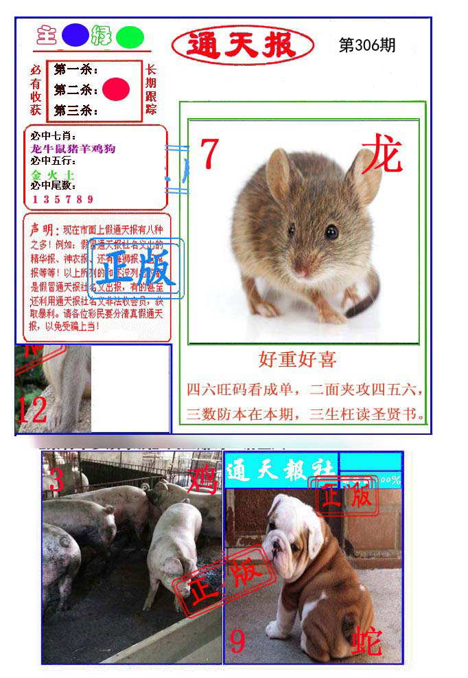 | 309期: ⑨肖 | 虎猪马龙鼠鸡牛狗羊 | ????中 |