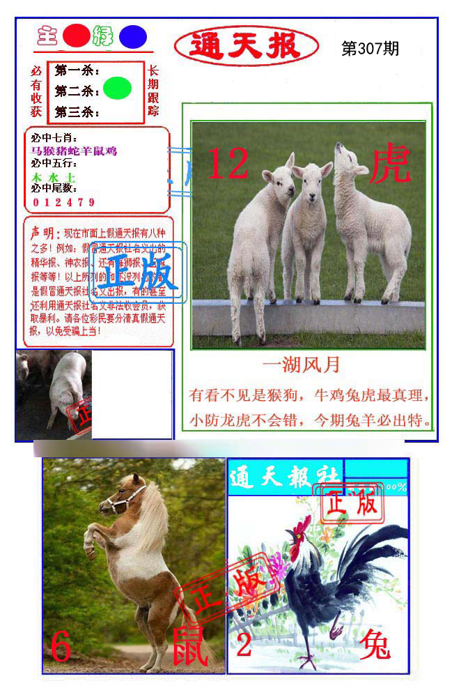 | 307期: ⑥肖 | 鸡蛇兔羊虎猴 | 马36中 |