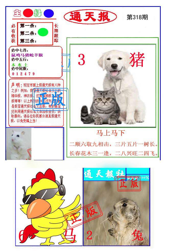 | 318期: ⑨肖 | 马鸡虎猴猪龙牛狗羊 | 猪31中 |