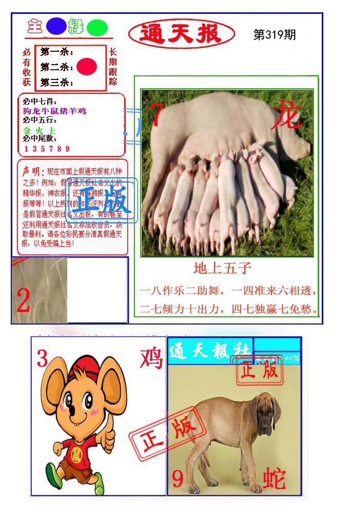 | 319期: ⑨肖 | 猴蛇羊猪牛狗鼠兔虎 | ????中 |