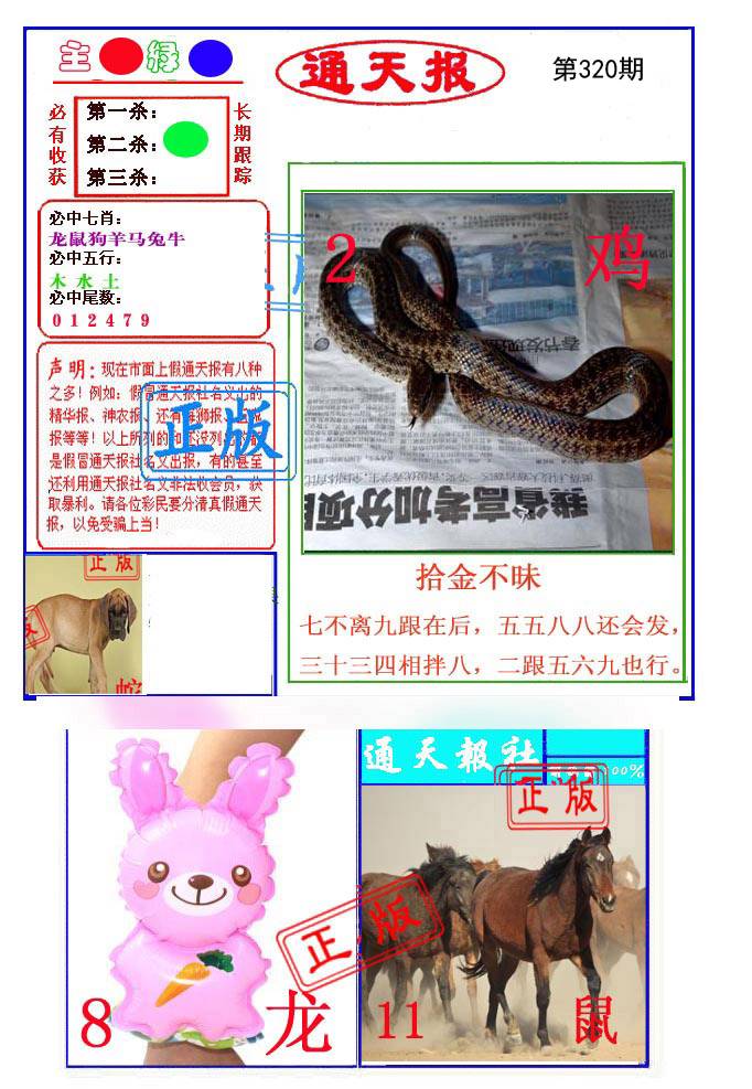 | 312期: ⑧肖 | 龙鼠鸡羊马狗牛兔 | 蛇13中 |