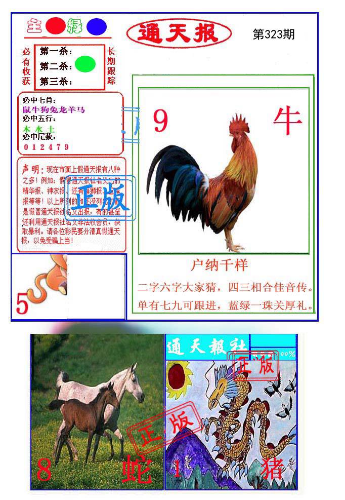 | 323期: ⑨肖 | 狗马牛猴兔猪龙虎鸡 | 虎16中 |