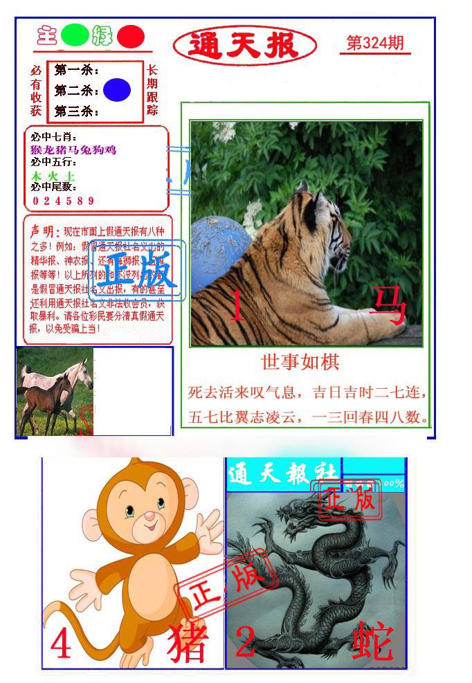 | 319期: ⑨肖 | 猴蛇羊猪牛狗鼠兔虎 | 虎28中 |