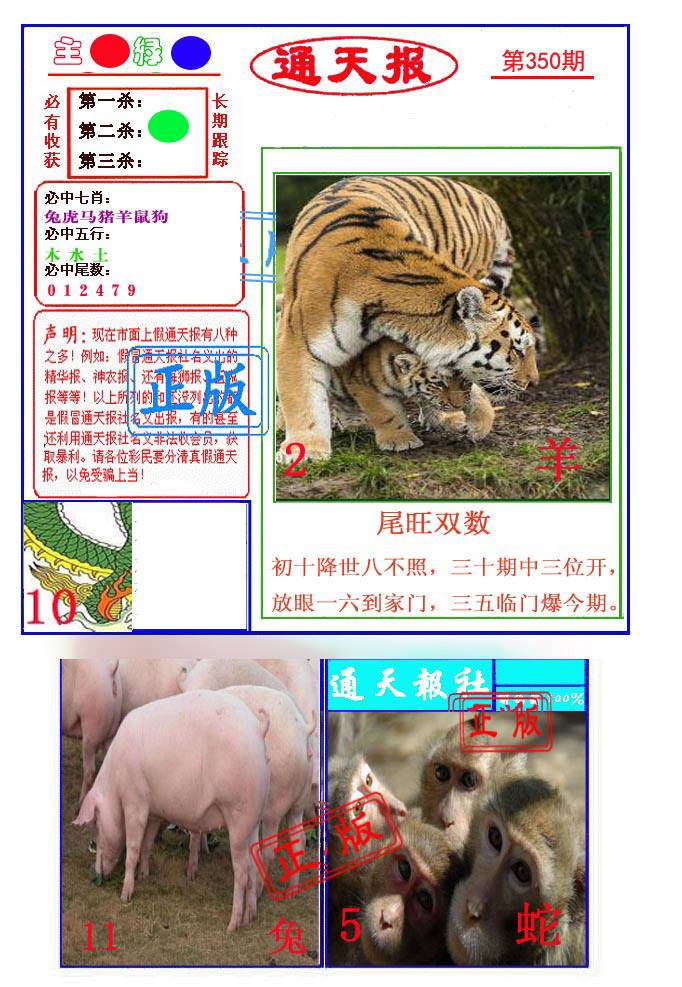 | 350期 | 虎 | 6尾 | 绿单 | 40-49 | 21鸡 |