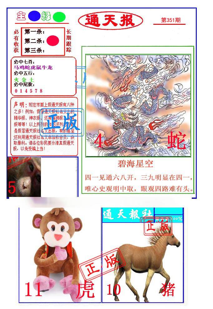 | 352期: ⑦肖 | 蛇兔虎猪狗猴鼠 | ????中 |