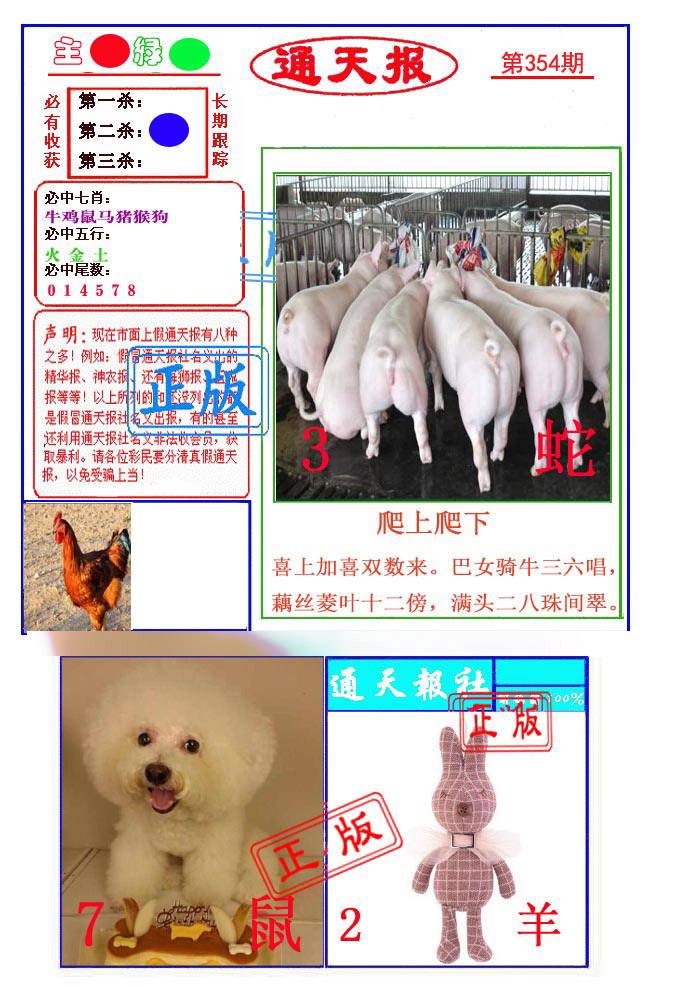 | 354期: ⑦肖 | 龙蛇虎羊鸡狗鼠 | 兔15中 |