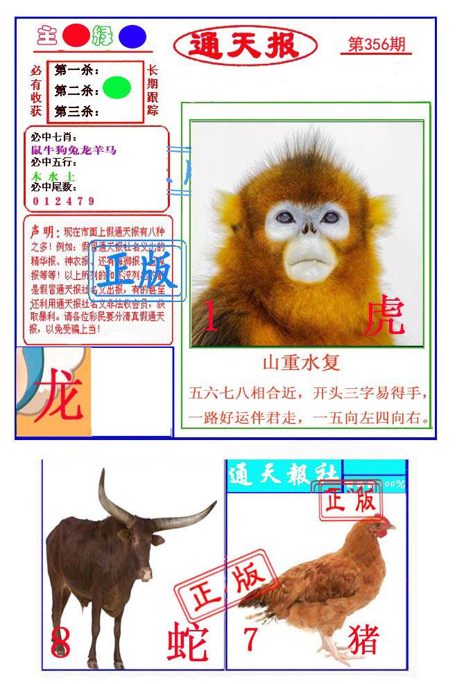 | 356期: ⑧肖 | 鼠兔马狗龙蛇羊虎 | 兔03中 |