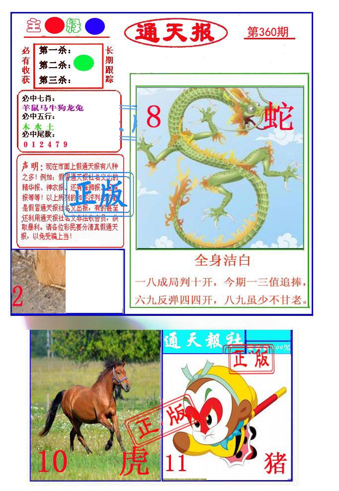 | 358期: ⑧肖 | 猪狗鸡龙马猴兔蛇 | 虎40中 |