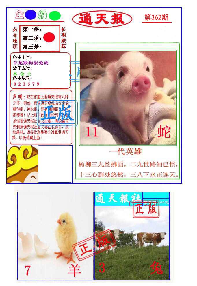 | 363期: ⑦肖 | 狗鼠蛇兔马羊猪 | ????中 |