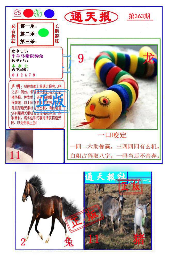 | 363期: ⑨肖 | 狗鼠蛇兔马羊猪鸡龙 | ????中 |