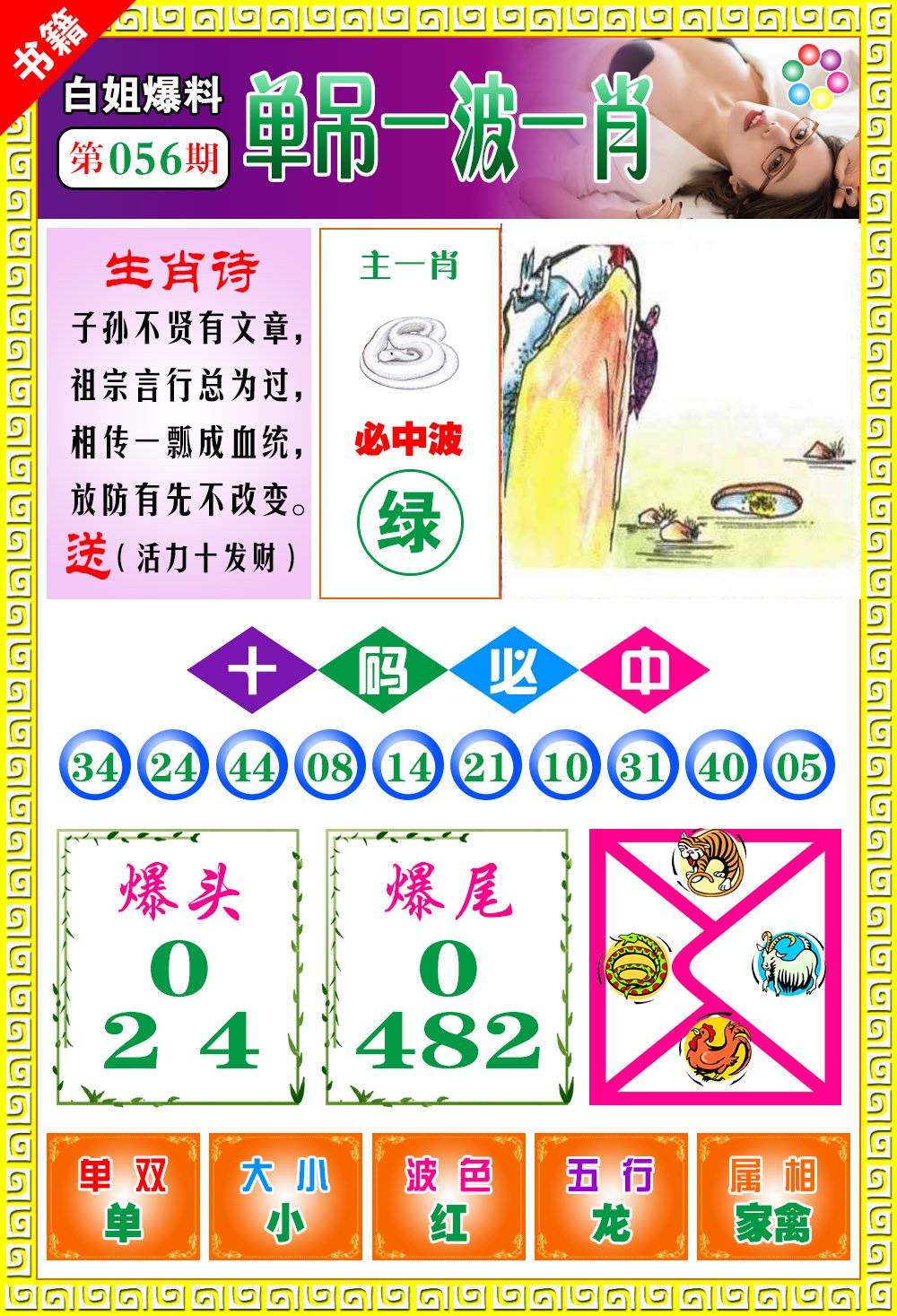| 056期: ⑥肖 | 牛鸡鼠蛇马兔 | 猪08中 |