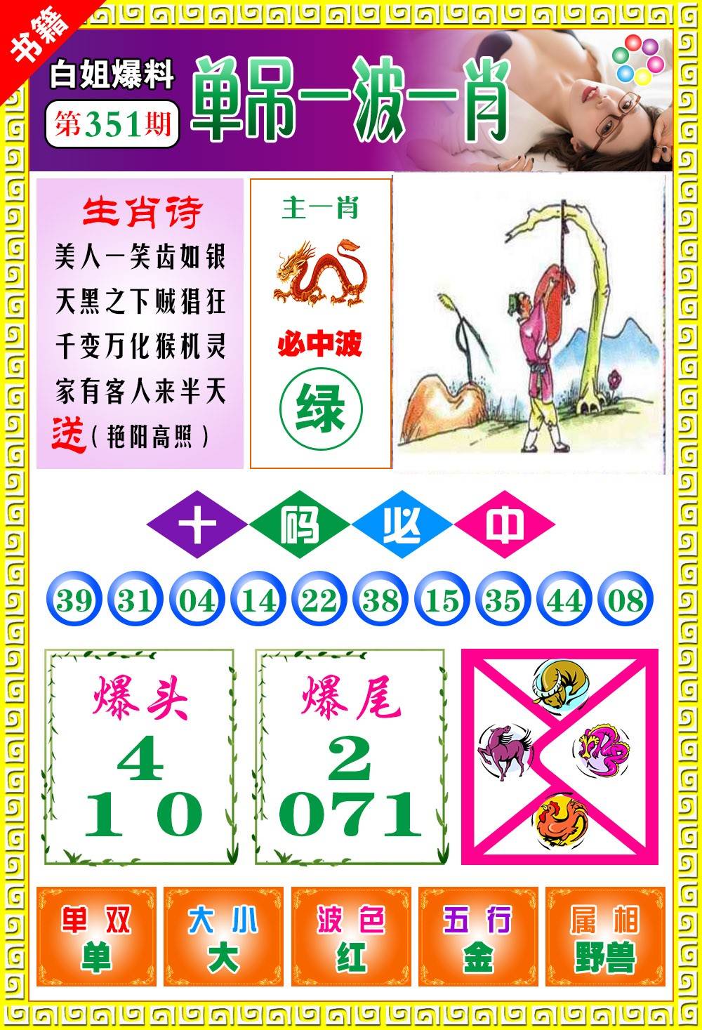 | 351期 | 猴 | 9尾 | 绿单 | 31-40 | 33鸡 |