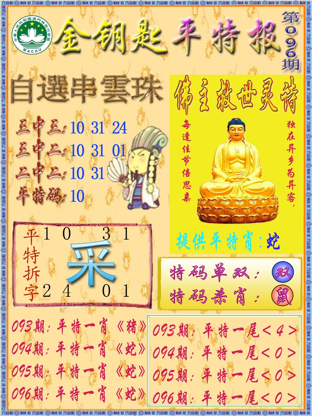 | 096期:公式平尾 | 096期:公式三行 | 096期:公式平特 |