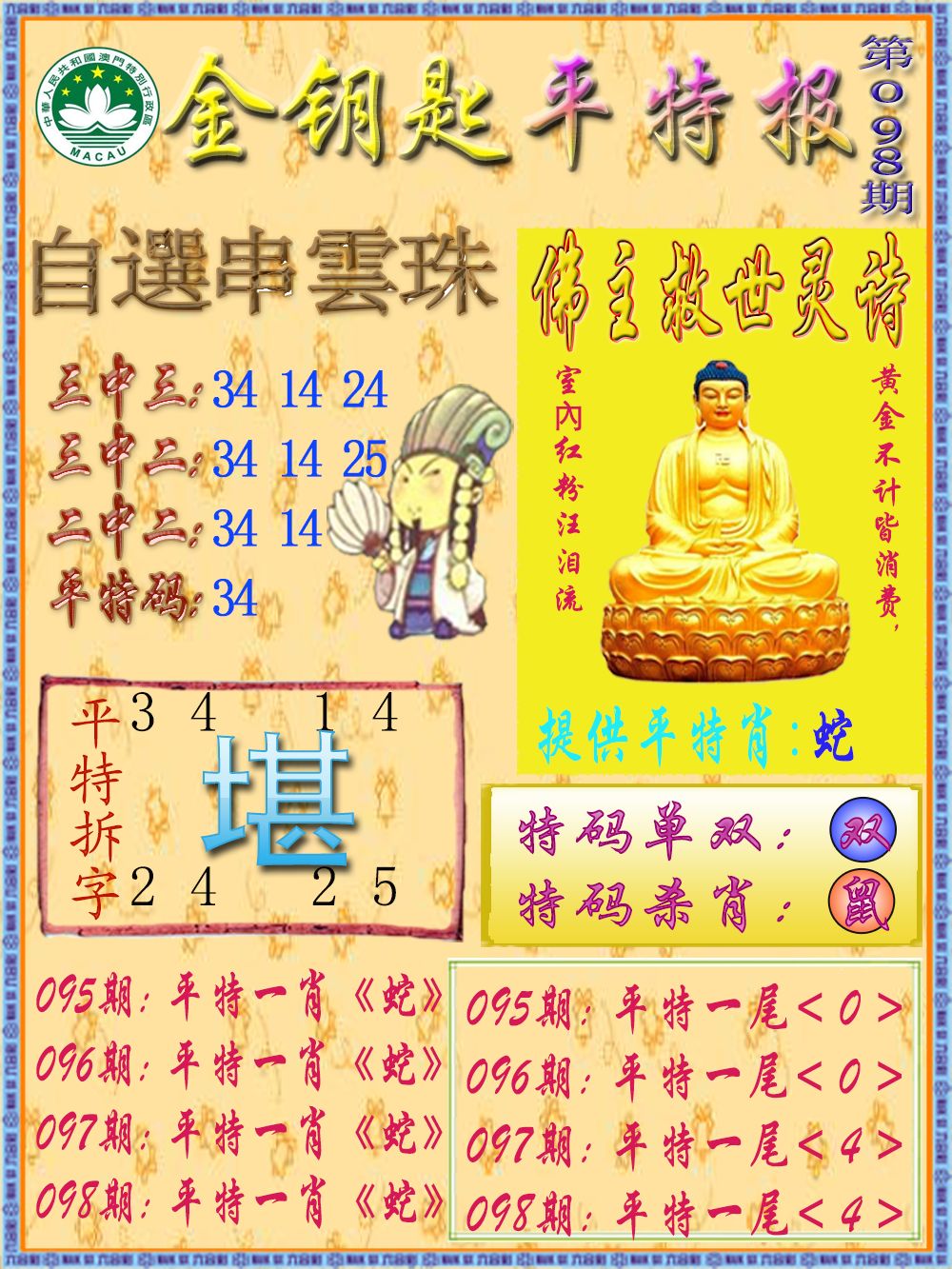 | 098期:公式平尾 | 098期:公式三行 | 098期:公式平特 |