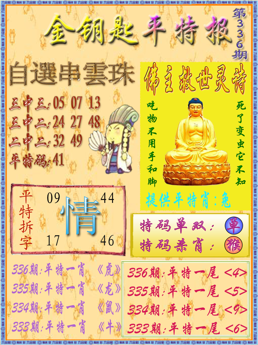 | 336期: ⑦肖 | 蛇鼠龙狗羊鸡兔 | 牛41中 |