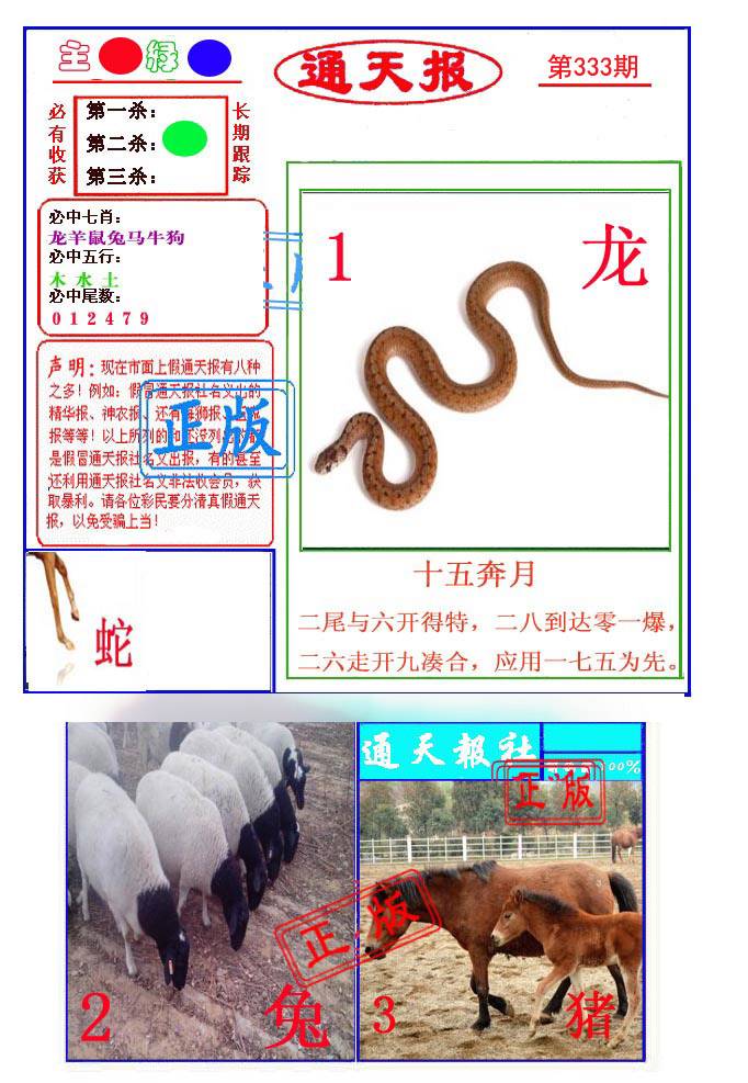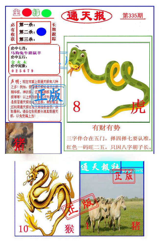 | 335期: ⑨肖 | 蛇虎猪牛鸡鼠狗猴龙 | ????中 |